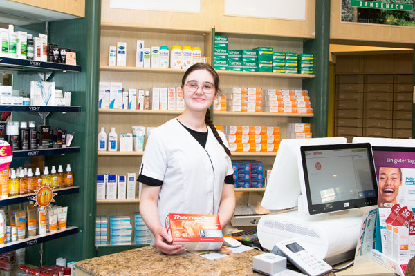 Die Ausbildung zum Pharmazeutisch-technischen Assistenten (PTA) ist eine überwiegend schulische Ausbildung, die ein halbjähriges Praktikum in der Apotheke beinhaltet. In der Kloster Apotheke absolvierten bisher vier junge Menschen dieses Praktikum, alle schnupperten vor ihrer Berufswahl durch ein Schülerpraktikum Apothekenluft. Drei von ihnen sind inzwischen Teil des Teams, ein PTA hat sich dazu entscheiden, noch ein Pharmaziestudium zu absolvieren. Dieser Erfolg motivierte, auch die Ausbildung zur Pharmazeutisch-kaufmännischen Angestellten (PKA) anzubieten.